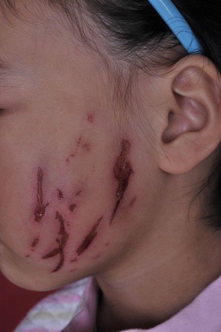 7歲女孩在教室里被人抓傷7歲的小顏(化名)是交城縣城內完全小學 (簡稱城內完小)的一年級新生。10月17日下午,小顏整理好書包,由媽媽送到學校。看著孩子走進教學樓,媽媽放心地離開了。她沒有想到的是,幾分鐘后,孩子竟然被人打傷了。