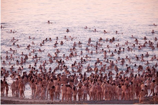 美藝術(shù)家組織1200人死海邊拍攝集體裸照(圖)