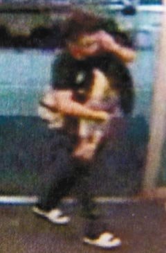 男子周健輝1日晚將已死的四歲男童王皓抱到新店慈濟醫院急診室,放在柜臺后邊講手機邊往外走去。圖片來源:臺灣《聯合報》