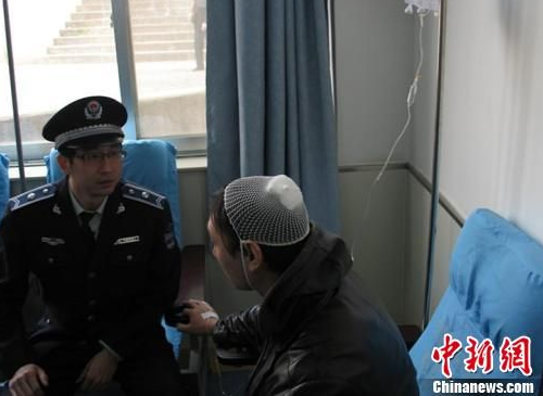 圖為隊(duì)員熊波頭部被打傷出血,在醫(yī)院縫針后輸液。