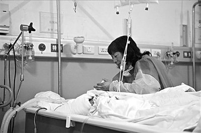 前晚,北京軍區(qū)總醫(yī)院東院燒傷科特護(hù)病房內(nèi),42歲的張某躺在床上呻吟,年僅17歲的女兒小雪坐在床邊,握住母親的右手,嘴中不斷念叨著:“媽媽,還差6萬,您就可以繼續(xù)手術(shù)了。”