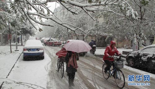 11月29日,在河北省邢臺(tái)市街頭,市民冒雪出行。當(dāng)日,河北省氣象臺(tái)發(fā)布暴雪黃色預(yù)警,石家莊、滄州南部、衡水、邢臺(tái)、邯鄲降雪量達(dá)到4-6毫米,預(yù)計(jì)傍晚到前半夜上述地區(qū)仍有降雪,其中衡水南部、邢臺(tái)和邯鄲雪量將達(dá)到10毫米以上。新華社發(fā)(邱洪生 攝)