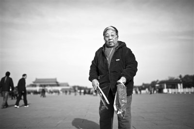 劉玉珍:1994年時,我經(jīng)常帶孫子孫女來天安門玩兒。地上到處是果皮紙屑。看著很難受。如果不撿,天安門會更臟。于是我隔三差五就來撿,撿著撿著就當(dāng)成了工作,于是天天來。