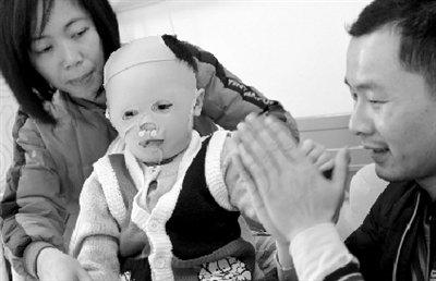 本報(bào)訊 (記者 聶寬冕) 去年10月份,2歲的廣東佛山女童冼諾怡在一次車禍中不幸被硫酸燒傷,不得不戴著硅膠面具生活,僅在吃飯時(shí)才摘下。從此,小諾怡便被人們稱為“面具娃娃”。前天,小諾怡的父母帶著她到京求醫(yī),希望能夠重還女兒嬌嫩的容顏。