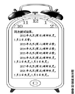 去年鬧鐘失靈時,有網(wǎng)友曾經(jīng)用iPhone4手機更改年份進行測試未來十年的鬧鐘失靈情況,結果顯示2012年元旦仍會出現(xiàn)鬧鐘失靈現(xiàn)象,而2016年、2017年和2021年元旦也將出現(xiàn)鬧鐘失靈。對此,蘋果客服在當時也表示,尚不能保證未來是否還會出現(xiàn)此類問題。不料如今現(xiàn)實與當時網(wǎng)友的預測一致。