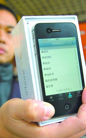 都市快報訊 13日,iPhone4S在全國正式發售,嚴先生辛辛苦苦地起了個大早,排了兩個多小時的隊,在聯通東山口營業廳買到了該處售出的第一部iPhone4S,但讓他沒有想到的是,這部價值6000元的剛拆開包裝紙的新手機里,竟然存有1343個電話號碼。