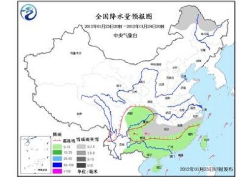 中新網(wǎng)1月23日電 中央氣象臺23日下午5時發(fā)布每日天氣提示,預(yù)報稱全國大部寒冷,雨雪留戀南方。