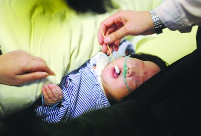 嬰兒被母割傷頸部,生命垂危。吳勝攝