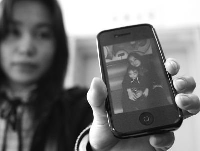 圖為小杰的母親拿著兒子生前照片悲痛不已。記者 楊濤 攝