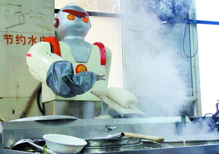 雅虎網訊 鄭州大學的食堂里來了一名“重量級”大廚,它可以一直不停地工作,而且削出來的面粗細、薄厚相當均勻。它就是現在鄭大食堂的“明星”廚師一個擁有奧特曼外表的機器人(如圖)。