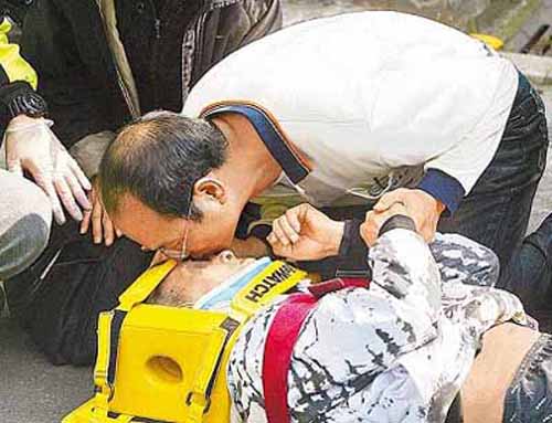 臺灣男子久病厭世跳樓 兒子吻尸送別(圖)