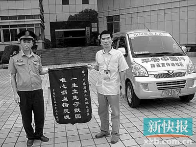 羅永正向彭永強(qiáng)警官贈(zèng)送錦旗