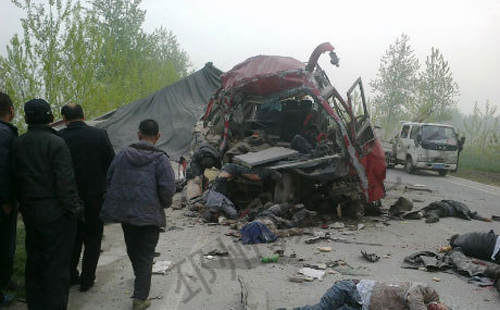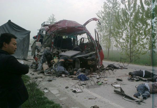 安徽蕭縣客車與貨車相撞 現場慘不忍睹(多圖)