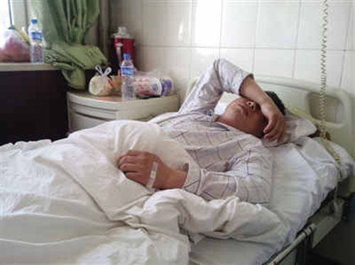 昨日,昌平區華一醫院,受傷的田先生躺在病床上。新京報記者 易方興 攝