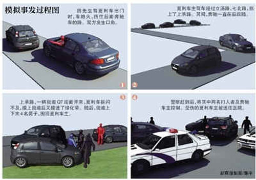 “11號下午5點半,我下班開著夏利出了亞運村車市,沒想到出門拐彎時,車子熄火了。”昨天下午,仍在醫院治療的田先生回憶,當時,因路比較窄,后面的一輛黑色奔馳S350只好也停了下來。“就在我重新發動車時,奔馳車車主搖下車窗罵我‘你開輛破夏利,是不是不想活了’,我當時就跟他發生了口角。”