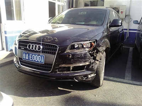 昨日下午,昌平平西府派出所,事件中涉及的夏利車及奧迪Q7停在院內。新京報記者 易方興 攝