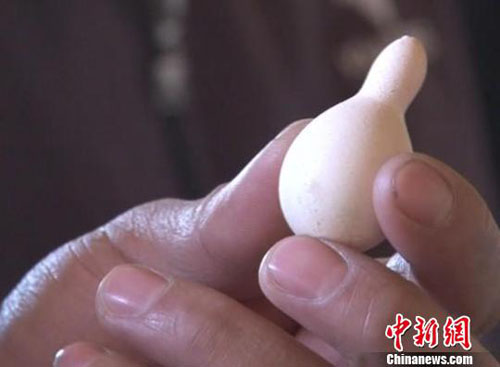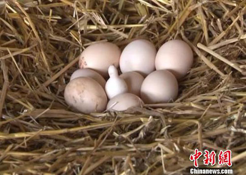 新疆一村民家中母雞下出“葫蘆”蛋(圖)