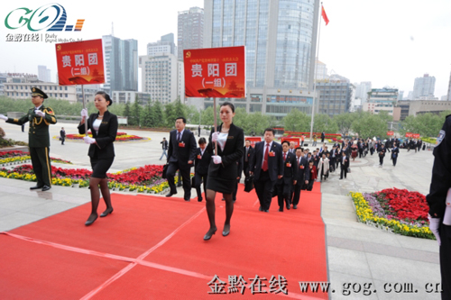 貴州省第十一次黨代會開幕式舉行,在禮儀的帶領下,代表陸續進入會場