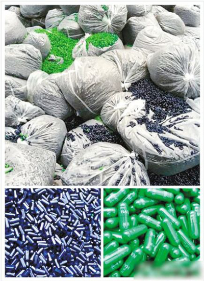 昨天上午10時許,在西安灞橋區棗園蘇村的麥田里,有一大堆空心膠囊,藍色的、綠色的、深綠色的共有三個顏色,有的還有“興邦藥業”的字樣,西安灞橋藥品稽查大隊李軍哲隊長說,一看就知道這不是轄區藥企傾倒的,因為最近兩天灞橋藥監局吳宏局長帶隊在轄區兩個藥廠檢查膠囊來源,兩家藥企都沒有生產膠囊的劑型,另外,兩家保健品企業只有一家有“青海明珠”的膠囊。灞橋分局趕快給西安市藥監局做了匯報,要求協查。藥監局將位于高陵涇河開發區的興邦藥業工作人員叫到現場,對麥田的有“興邦藥業”標識的膠囊進行辨別,廠方人員說這膠囊的字跡與正規的膠囊不符,認定為仿制該廠的膠囊,數量大概在520萬顆,李軍哲隊長在現場用手一捏,膠囊就碎成粉末,放在嘴里長時間不化,并且脫色嚴重,只要一摸,就染一手顏色,藥監人員整整裝了一卡車。李軍哲說初步判斷這是一批假冒的空心膠囊,可能是最近清查空心膠囊的風聲很緊,造假者害怕兜不住了,倒在麥地里。