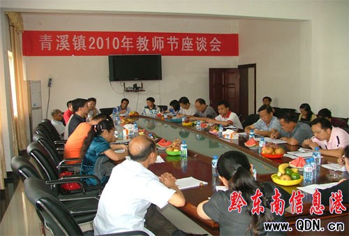 本港訊 (涂興梅 攝影報道)振興民族的希望在教育,振興教育的希望在教師。為隆重慶祝第26個教師節,2010年9月9日下午,在教師節來臨之際,青溪鎮黨政班子成員,中、小學校負責人,各學校所在村負責人共32人歡聚一堂,共同慶祝教師節。