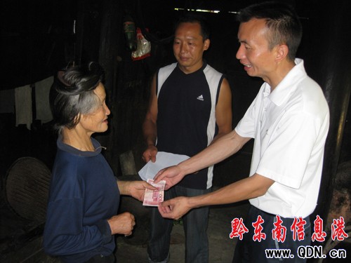 圖為平寨鄉黨委書記龍明富同志在平途慰問困難黨員