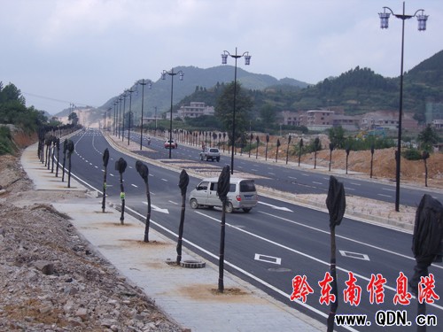 目前下司城市主干道一期工程人行道建設、道路路面鋪油、道路兩邊綠化以及路燈安裝工作已全面完成竣工。(黃愛仙)