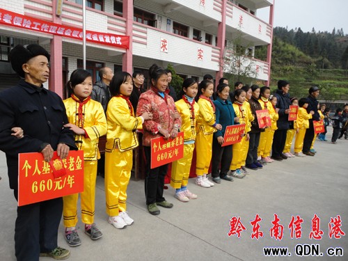 12月9日上午,錦屏縣鐘靈鄉在鐘靈小學舉行了城鄉居民社會養老保險養老金首發儀式,當地30位60周歲以上的農民高興地領到了自己的養老金,成為我鄉首批城鄉居民社會養老保險養老金惠農政策的見證人。錦屏縣社局副局長龍本林,我鄉領導全部出席了儀式,為農民代表頒發了養老金。
