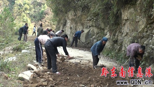 據悉,近年來,溝洞村村民依靠黨的富民政策辦起養殖業,搞起了鄉村旅游業,日子一天比一天好了起來。由于自然災害和過往車輛壓踏等原因,進村公路崎嶇不平,游客怨聲載道。每年村民都要投工投勞對公路進行地面整修和維護,在冬、春雨雪天氣來臨之前,將公路輔好,喜迎四方客。(石慶偉 粟周銀 攝影報道)
