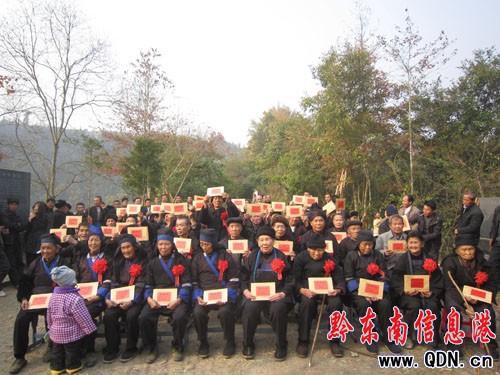 自黎平縣新農保、城居保工作啟動以來,地坪鄉2011年16至 59周歲參加新農保任務數為4036人,60 周歲以上參加新農保任務數為2740人。目前 60 周歲以上老人參保數已達 2609 人,參保率為95.22% 。本年度7 — 12月養老金14.3495萬元已全部發放到參保老人手中。圖為養老金首發式現場。(周志光 鐘家武)