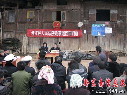 近日,臺江縣人民法院、檢察院和交警大隊深入該縣排羊鄉臺樂村,在這里對當地村民李某醉酒駕駛機動車一案進行公開審理。當天,附近村民和部分司機到庭旁聽了庭審活動,收到了良好的法律效果和社會效果。通過旁聽這次庭審,在場群眾紛紛表示,現在才知道醉酒駕車是觸犯法律的犯罪行為,以后不但自己要杜絕此類行為的發生,還要規勸親朋好友也不能酒后駕車,要自覺遵守交通法規。 (唐光新 金貴華 攝)