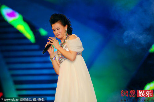 5月20日晚在江蘇淮安淮陰區,央視《中華情.愛心淮陰.融僑之夜》大型文藝晚會錄制,宋祖英身穿華美白裙縱情高歌,不料突然煙火響起,驚嚇了宋祖英,她慌忙躲閃花容失色。