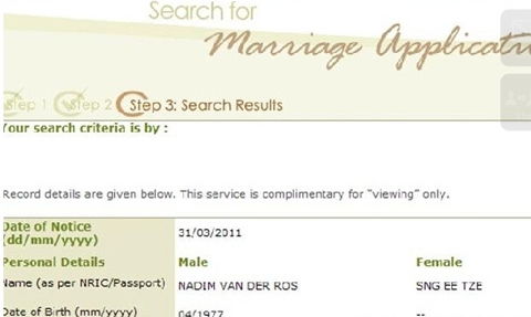 新加坡婚姻注冊局網站上的信息。