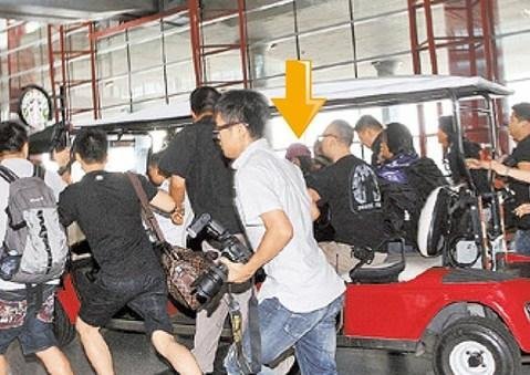 謝霆鋒(箭頭處)大前天抵達北京機場時造成媒體、粉絲騷動