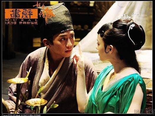 《畫壁》今日曝光的片場照片中,書生打扮的鄧超與身穿美艷紗裙的仙女孫儷打情罵俏,擺出搞怪造型,表情俏皮,十分甜蜜。據(jù)導(dǎo)演陳嘉上透露,“他們很喜歡孫儷在《畫壁》里的房間,特別古樸,搭配上古香古色的發(fā)型和服裝。”