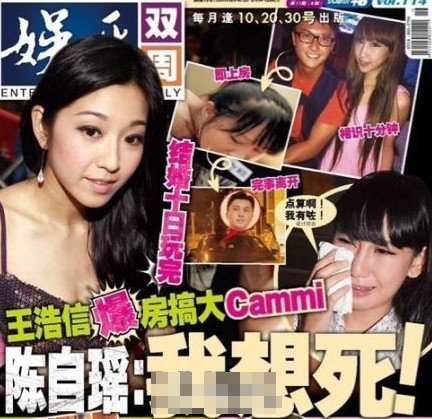 鳳凰網訊 近日某雜志稱陳自瑤的老公王浩信與謝芷蕙偷情,謝芷蕙已經懷孕兩個月的傳聞甚囂塵上。謝芷蕙近來先是爆出與陳冠希的親密照,后流出不雅照,如今再被爆出與陳自瑤老公有染,網友戲稱其為“集郵女殺手”。剛剛在11月11日與王浩信結婚的陳自瑤傳出這樣的消息,雜志封面用了“想死”這樣的字眼,陳自瑤是曾經學校的校花,因為一支廣告瞬間走紅,可謂紅極一時。另外,陳自瑤曾經與林峰拍攝電視劇,陳自瑤在劇中飾演林峰的女友。