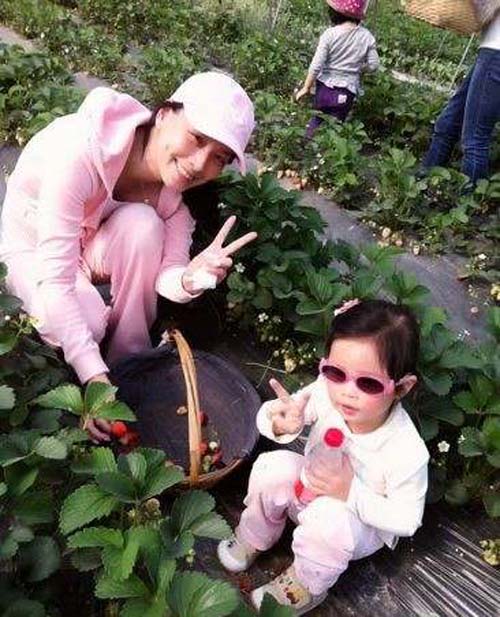 張庭林瑞陽帶女兒摘草莓 郊游其樂融融(圖)